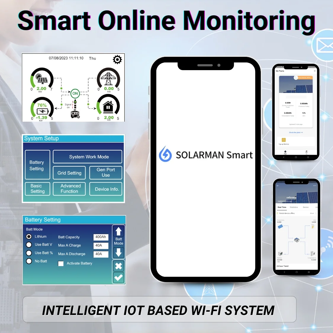 • Inverter Designed on 48V DC power and compatible with all Lead- Acid & Lithium Iron Phosphate batteries.